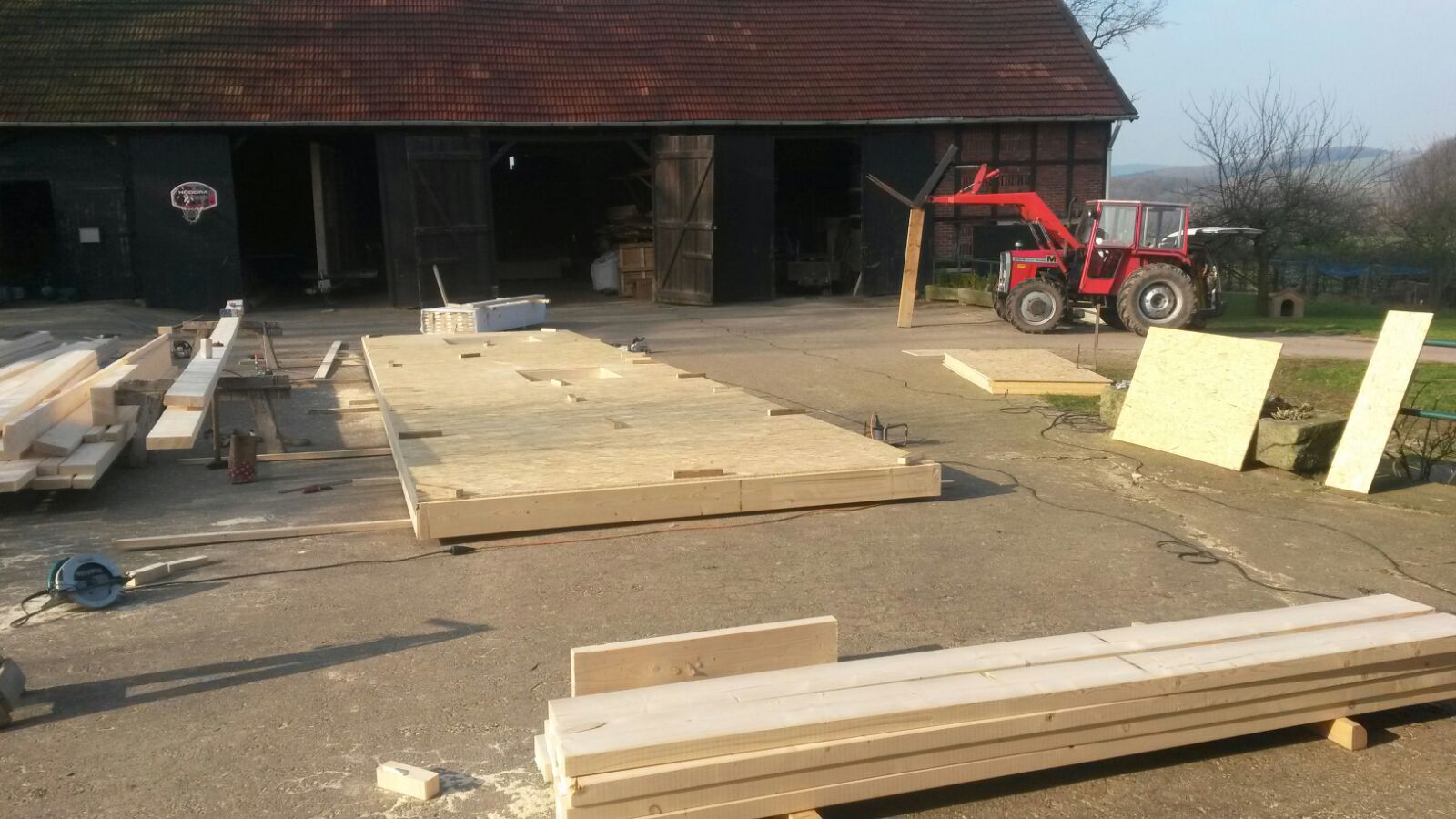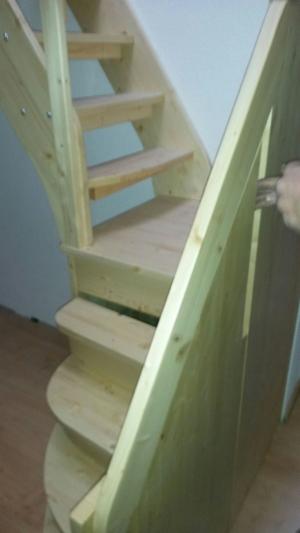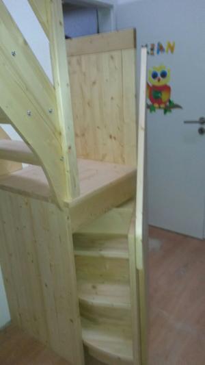 Treppe auf kleinem Raum. Um bei Nichtnutzung der Treppe Platz zu sparen, sind die 4 Stufen unterhalb des Podests einklappbar.